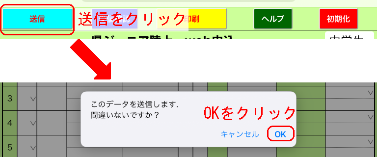 確認のメッセージが出たら,「OK」をクリックするとデータが送信されます。