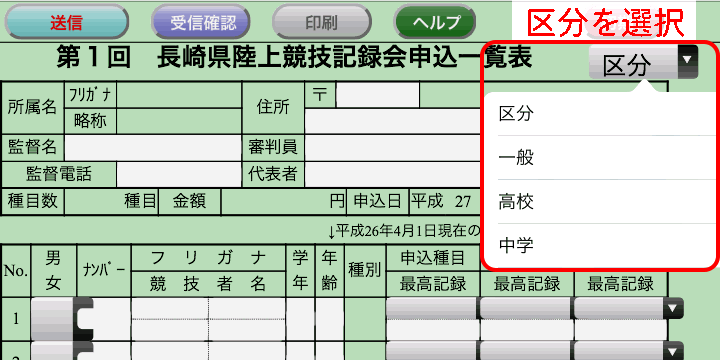 1行目のナンバーカードを入れると,所属略称が自動的に入ります。